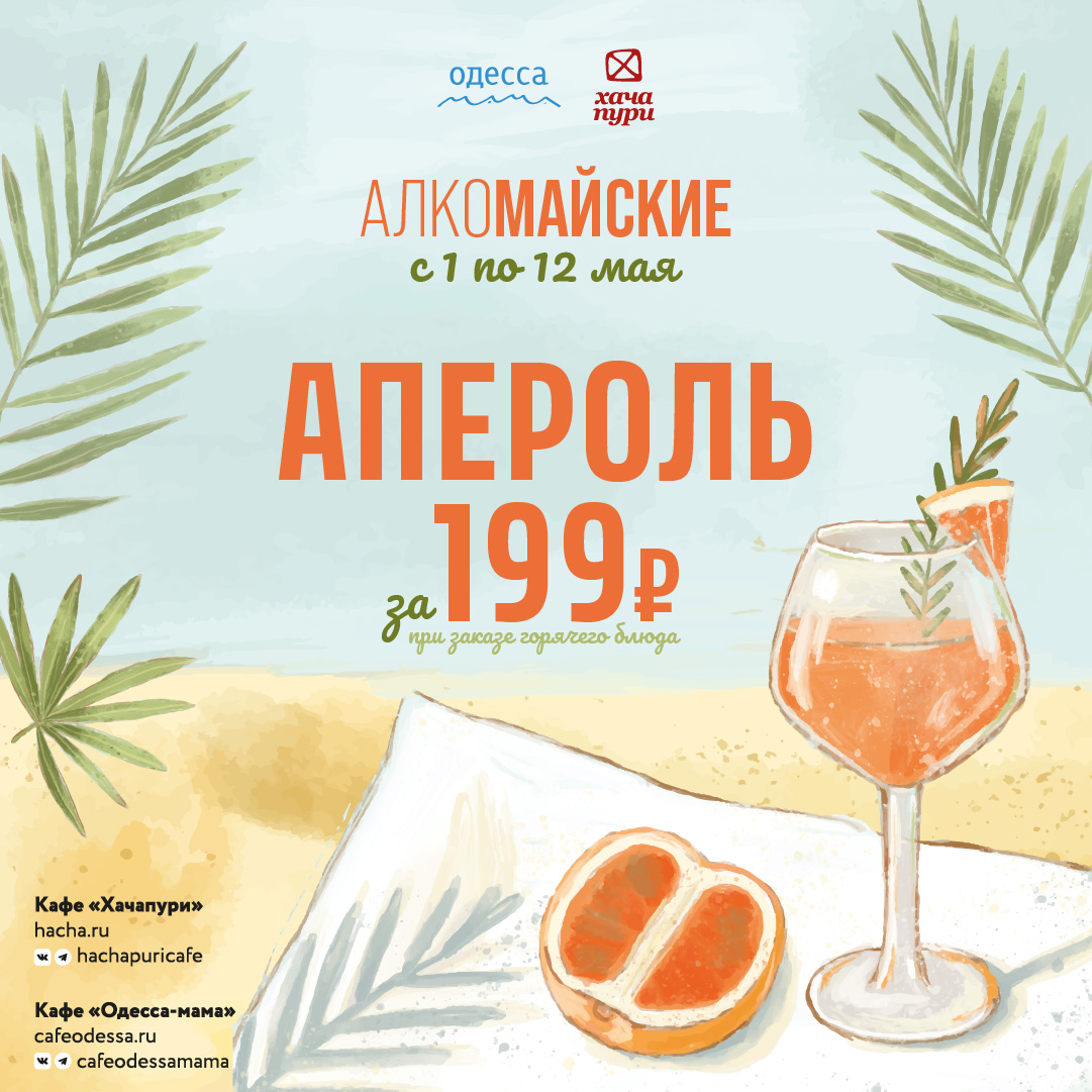 Для поддержания классного весеннего настроения в кафе «Хачапури» и «Одесса мама» объявляются АЛКОМАЙСКИЕ🍹
